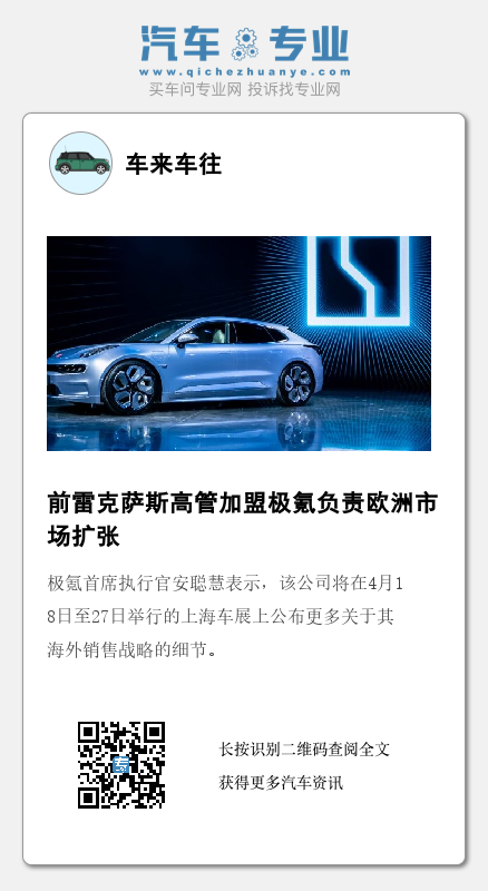 极氪首席执行官安聪慧表示,该公司将在4月18日至27日举行的上海车展上公布更多关于其海外销售战略的细节。安聪慧补充说,极氪的目标是今年销售14万辆汽车,即在2022年的基础上翻一倍。
