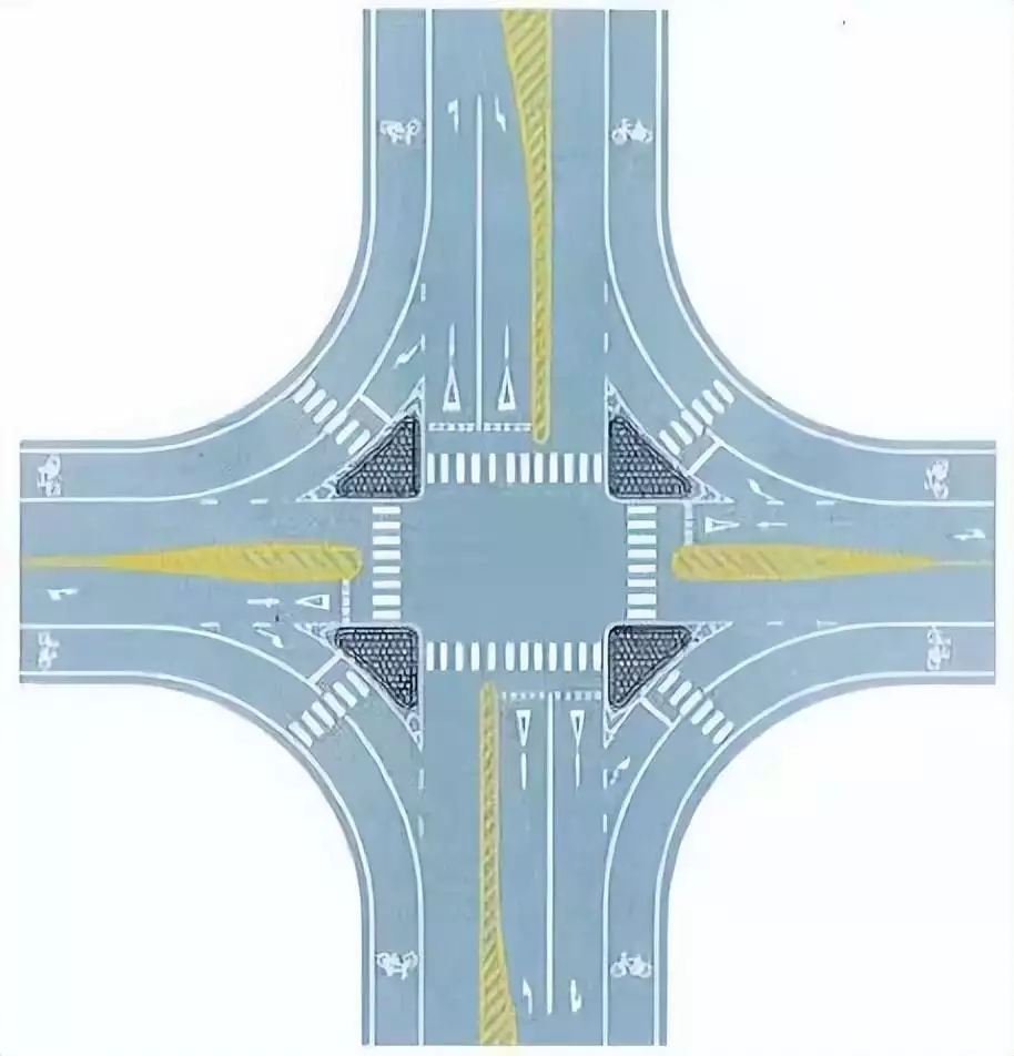 导流线主要用于过宽、不规则或行驶条件比较复杂的交叉路口,立体交叉的匝道口或其他特殊地点。