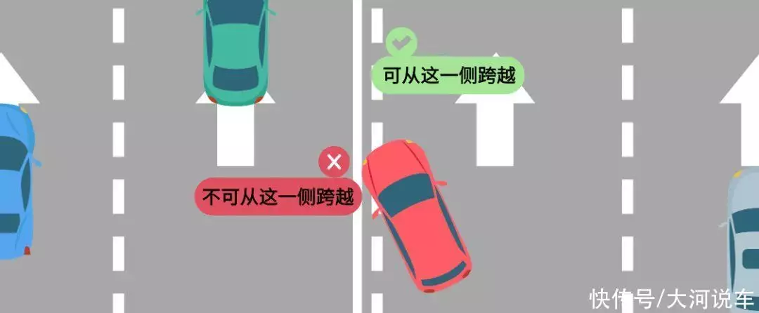 车辆可以从虚线的一侧跨越