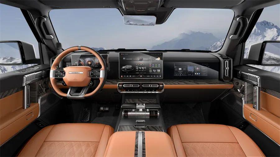 雄魂设计理念还融入到猛士917的内饰设计中,无处不透露出东方豪华的非凡气势。万里江山主题内饰、烽火台式空调出风口、手枪式扶手,彰显出胸怀天下的气势。东方文化刺绣工艺的点缀,传递出悦目、雅致的东方豪华意境。这些极具东方豪华气质的设计,在悍马EV、仰望U8身上是GET不到的。
