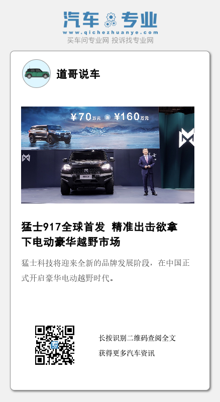 当然,热衷于豪华越野车型的消费者,售价是对标参考的一个选项,更为看重的是车型的技术支撑与驾乘功能、舒适体验等。站在用户需求的角度,猛士科技对猛士917的实力储备那是相当的自信。不过,还是让消费者自己看看“猛士”到底有多猛吧!