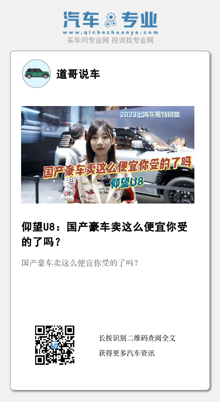 仰望U8:国产豪车卖这么便宜你受的了吗?