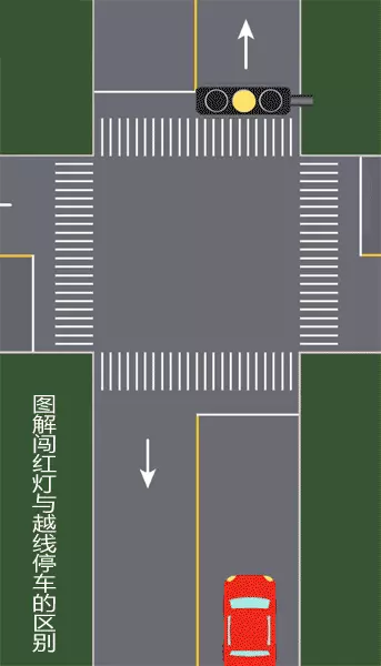 红灯已亮,车身越线