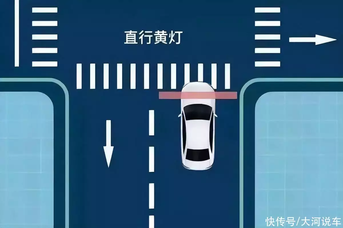 也就是说,若车辆车头已越过停止线,则直接驶过路口即可;若前轮未过停止线,则应立即停车,在停止线内等候。