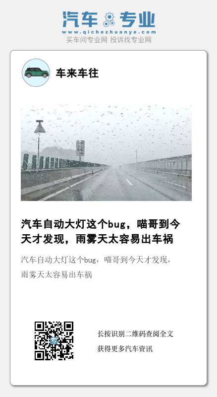 你不要一味地迷信自动大灯,自动大灯是个好东西,但是自动大灯有BUG,尤其还是非常致命的一个BUG。