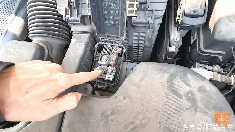 找到发动机里面,任意有铁的地方,整个车身它就是个巨大的负极。
