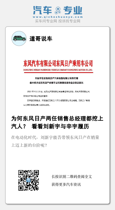 不过,直至2021年东风日产仍维持着百万辆销量以上的规模,并于2022年达成1500万累计销量的里程碑。可以看到辛宇在担任东风日产乘用车销售公司一把手期间的成绩还是不错的。"为东风日产市场销售体系能力提升、品牌向上升级、助力公司高质量跨越1500万产销规模,作出了重要贡献。"东风日产在公告中也对辛宇的任期给予高度评价。