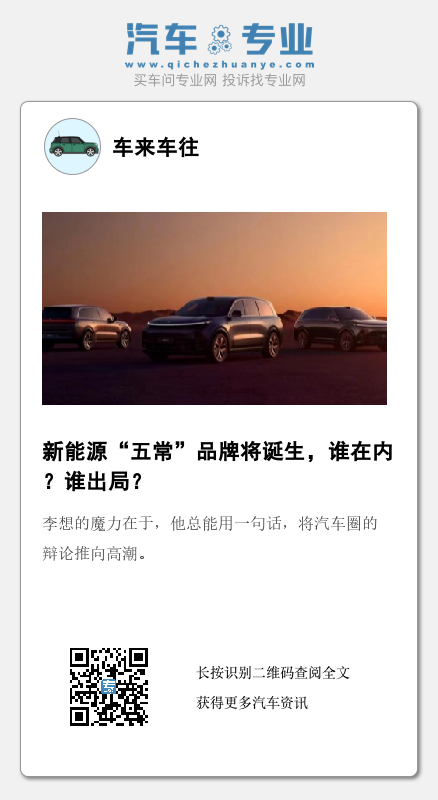 最后,所谓的“五常”名单,不是车企、媒体说了算,而是消费者说了算,瞬息万变的新能源车市场,三年必定会天翻地覆。