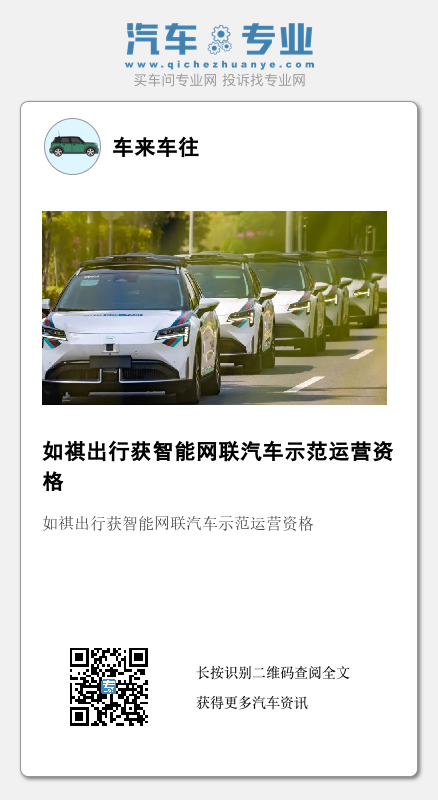 4月26日,如祺出行获批在广州开展智能网联汽车示范运营资格,如祺出行自有Robotaxi车队将正式上线运营。
