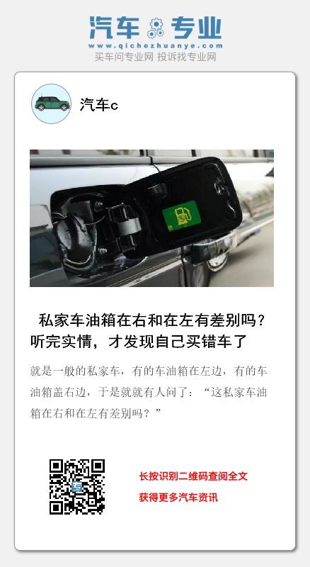 很多车主听完实情,才发现自己买错车了!油箱在右侧更安全一些,早知道就买油箱在右边的汽车了。不过现在很多油箱在右边的汽车都是高档合资车或者进口车,比一般的私家车贵多了,不是一般人买得起的,想买油箱在右边的车也得先看看自己的钱包够不够。