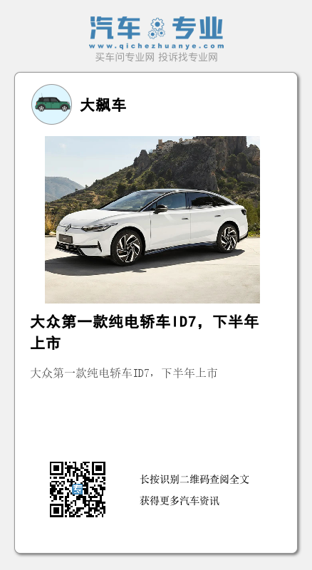 前段时间,大众发布了ID品牌的第一款纯电轿车ID7。这辆车的轴距长达2.9米,根据不同配置搭载不同容量的电池,该车将于2023年下半年在中国市场上市。
