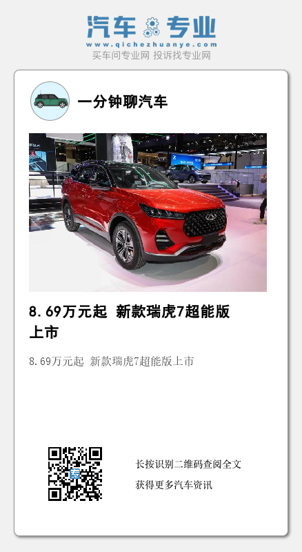 8.69万元起 新款瑞虎7超能版上市