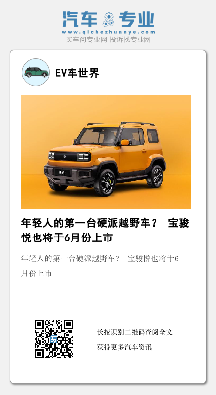 年轻人的第一台硬派越野车? 宝骏悦也将于6月份上市