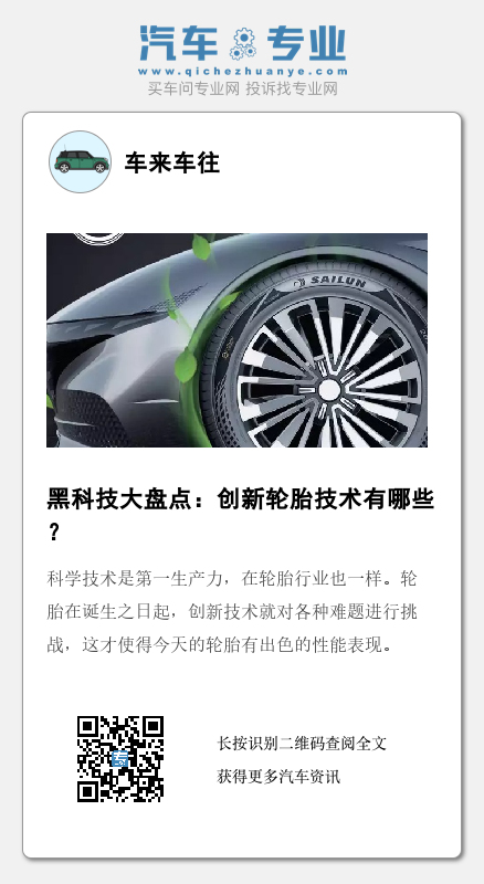 历史的车轮滚滚向前,随之一起的还有真正意义上滚滚向前的轮胎。相信在不久的将来,各大轮胎制造商能够研发出更富科技感的轮胎,轮胎也会不断地改变着世界。咱们今天聊到只是一些比较有代表性的创新轮胎技术,如果您还知道其他创新轮胎技术,可以在评论区告诉大家哦~(图/文/摄:太平洋汽车 酷养车公共账号)