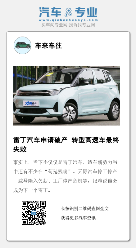 编辑总结:事实上,当下不仅仅是雷丁汽车,造车新势力当中还有不少在“苟延残喘”。天际汽车停工停产,威马陷入欠薪、工厂停产危机等,很难说谁会成为下一个雷丁。