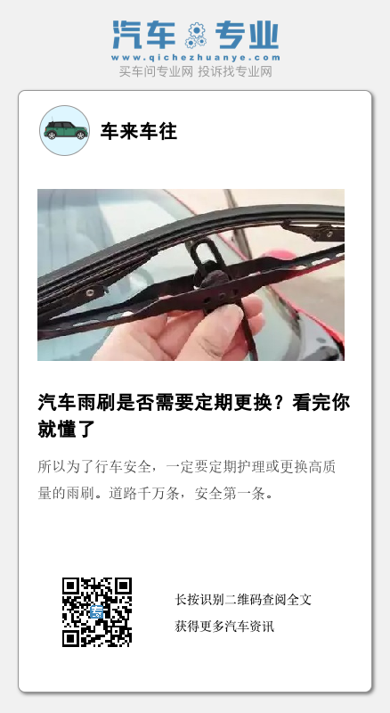 所以为了行车安全,一定要定期护理或更换高质量的雨刷。道路千万条,安全第一条。