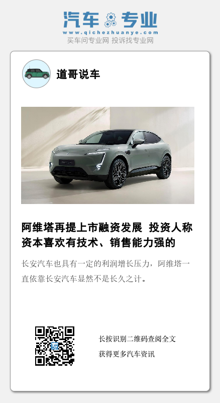 但上市之路并不是很好走,几乎每个初创车企都有上市的打算,但成功的却只有那么几家。一位不愿透露姓名的电动汽车投资人对《道哥说车》编辑表示,阿维塔的优势在于有长安的基因,以及华为、宁德的时代的支持。不过其也提到,资本喜欢的是有自己核心技术、销售能力较强的汽车企业。