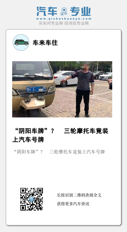 经了解,车主李师傅经常在这片小区送货,三轮车上套用的汽车车牌是自己货车的。因其汽车号牌录入了小区停车场的道闸系统,可以随意进出停车场,而三轮摩托车进出小区时需要喊保安帮忙开道闸,李师傅觉得既麻烦又浪费时间,于是就想用透明胶带将汽车号牌贴在三轮车的前脸上的“办法”。