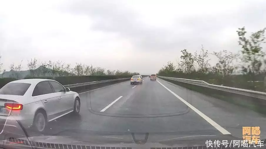 踩的时候,关键还不看旁边的后视镜,尤其是不看中间的后视镜。我跟你讲了,如果在快速路上,后面跟了大车,你踩了急刹之后,大车一怼过来,大车的全责。