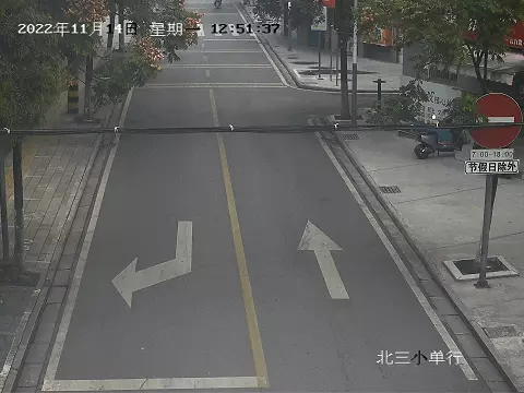 如下图所示,该路段设置为单行道,北南向路口就设有单行道标志和禁止停车标志。