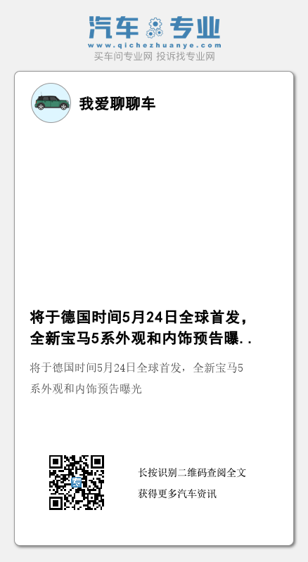 据宝马官方获悉,宝马i5(图片)将于5月24日首发。预片中可以看出,宝马i5采用了家族式的双肾的格栅设计,并加入了发光的中网。新车到底有哪些改变呢,下面根据现有的信息,来看一下。