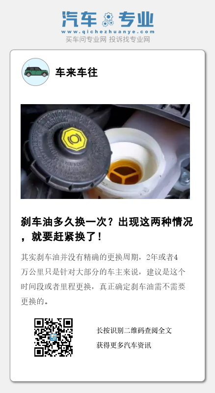 关于刹车油多久更换,网上的普遍说法是2年或者4万公里,但是有部分车主反映,刹车油一年就需要更换一次,否则刹车软的像踩在棉花上一样,真怕出现紧急制动时刹车失灵。其实刹车油并没有精确的更换周期,2年或者4万公里只是针对大部分的车主来说,建议是这个时间段或者里程更换,真正确定刹车油需不需要更换的。