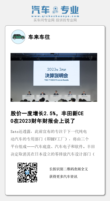Sato还透露,此前宣布的专注于下一代纯电动汽车的专用部门(即BEV工厂),将由三个平台组成——汽车底盘、汽车电子和软件。丰田决定取消其在日本设立的零排放汽车设计部门(即ZEV工厂)。