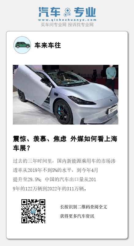 Automotive News Europe为上海车展评选出5款中国明星车型,分别是:奇瑞iCar 03、蔚来ES6、比亚迪宋L概念车、广汽埃安Hyper GT、广汽传祺氢能概念车SPACE。