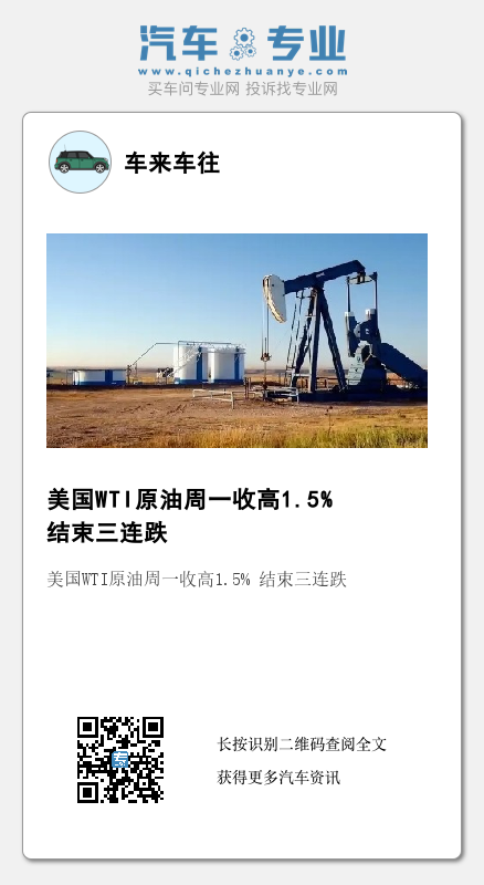 周一,纽约商品交易所6月交割的西德克萨斯中质原油(WTI)期货价格上涨1.07美元,涨幅为1.5%,收于每桶71.11美元。