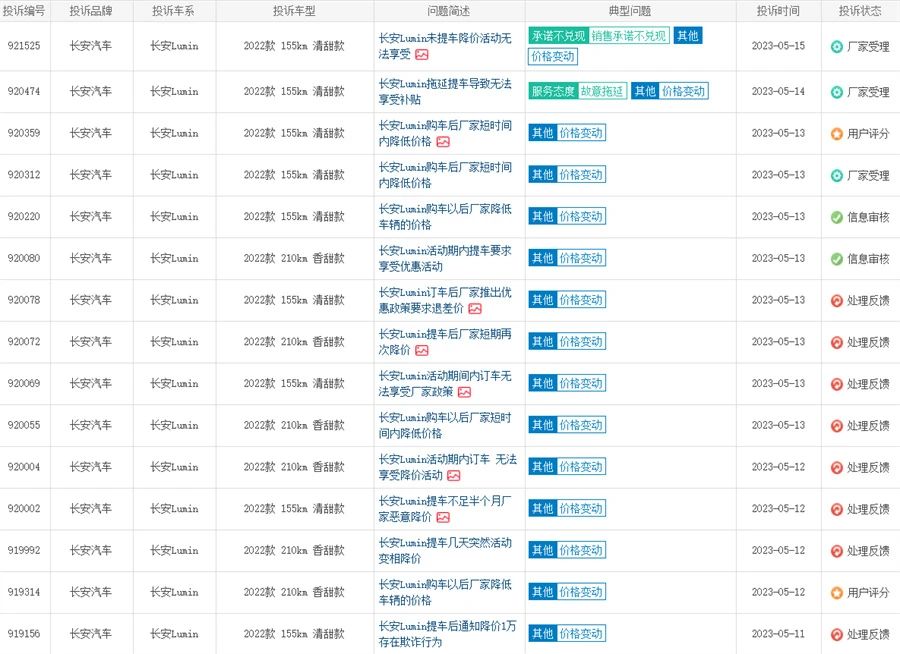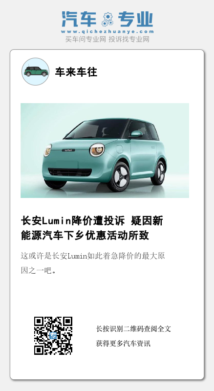 日前,在汽车投诉平台上,《汽车专业网》编辑注意到,有多位车主投诉购买长安Lumin后厂家短时间内降低价格。