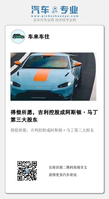 不过显然吉利控股的野心还不止于此。在完成对阿斯顿·马丁相关股权收购事宜之后,有消息就传出吉利控股正在考虑增持阿斯顿·马丁的股份,将持股比例增加到10%左右,用以推动吉利与阿斯顿·马丁的相关合作事宜。