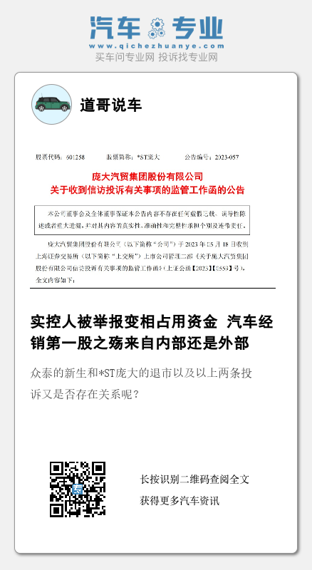 值得关注的是,给庞大集团带来重整机会的黄继宏于2021年着手重整了濒临破产的众泰汽车,向众泰汽车注资20亿元,作为盘活这家汽车企业的第一笔启动资金,并于当年12月成为众泰汽车的实控人。众泰的新生和*ST庞大的退市以及以上两条投诉又是否存在关系呢?