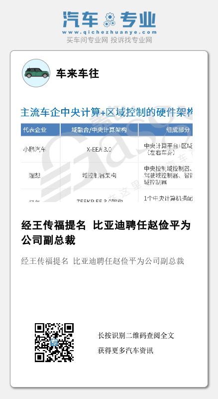 5月20日,比亚迪(002594,SZ)发布公告称,经公司总裁王传福提名,并经公司董事会提名委员会审查,聘任赵俭平为公司副总裁。