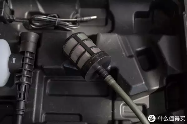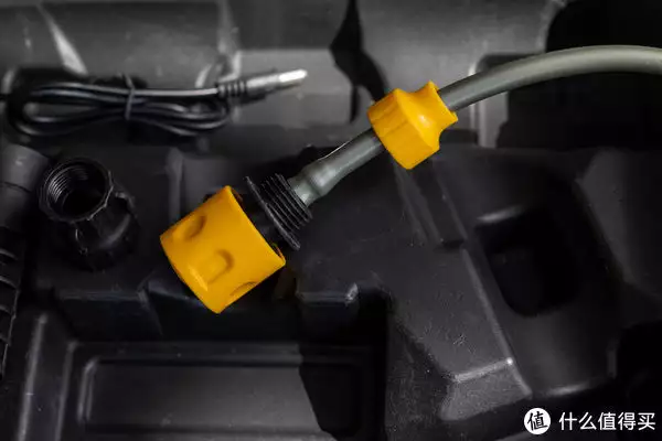 另外,这款洗车机配置了有5米水管,两头分别接上快接头和滤网,以后就可以直接使用了。不过,这款洗车机的电池在拆卸时有点费力,按下安全扣后还得用较大力量才能拔下,希望后期厂家能够改善。