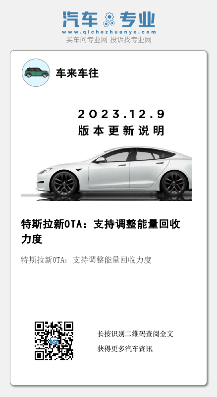 IT之家 5 月 22 日消息,特斯拉今日发布了 2023.12.9 软件版本更新说明,该版本已开启分批推送,更新内容包括归还用户动能回收力度可调的功能等。