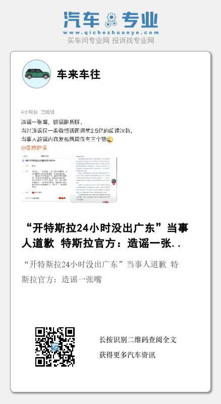 今日,特斯拉官方转发这条视频并称,这是个假消息。当事人发布道歉声明表示,当时大部分内容都是虚构的。希望大家不信谣,不传谣。