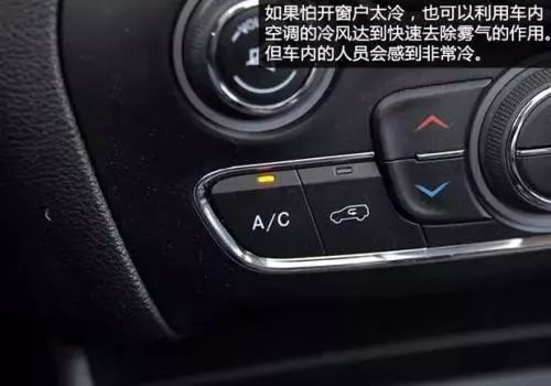 但是,上述方法适用于干冷的北方冬季,在湿冷的南方冬季就不太适用,需要启动A/C将空气除湿后再混合热风,这样能很好的避免出现车内玻璃起雾的现象,也就是说车窗起雾了就可以打开A/C键,进行除雾。