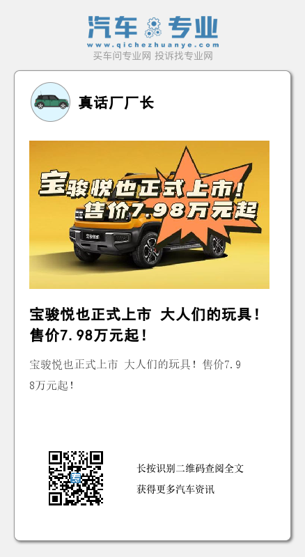 5月25日,上汽通用五菱旗下全新小型纯电动SUV——宝骏悦正式上市,新车售价区间为7.98万元-8.98万元,新车采用硬朗的设计风格,有一种小型越野车的感觉。