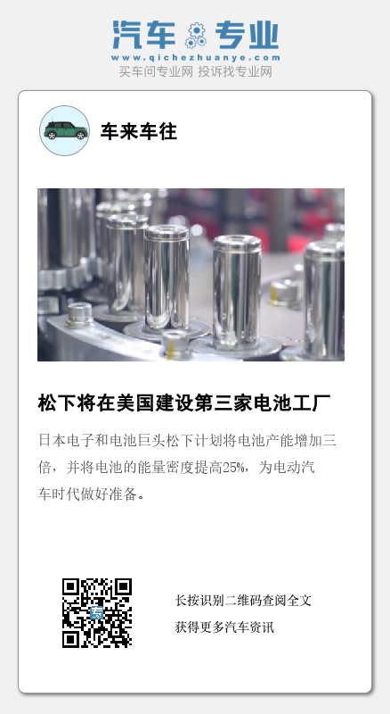 日本电子和电池巨头松下计划将电池产能增加三倍,并将电池的能量密度提高25%,为电动汽车时代做好准备。
