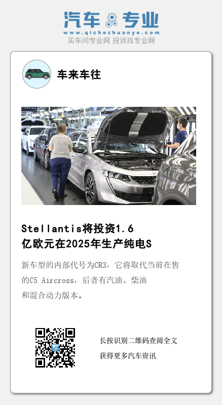 Stellantis在一份声明中表示,该公司将利用这笔投资建立一个电池组装车间以及一个专门用于塑料注塑成型的车间,并补充说该车型将使用其STLA Medium平台。新车型的内部代号为CR3,它将取代当前在售的C5 Aircross,后者有汽油、柴油和混合动力版本。