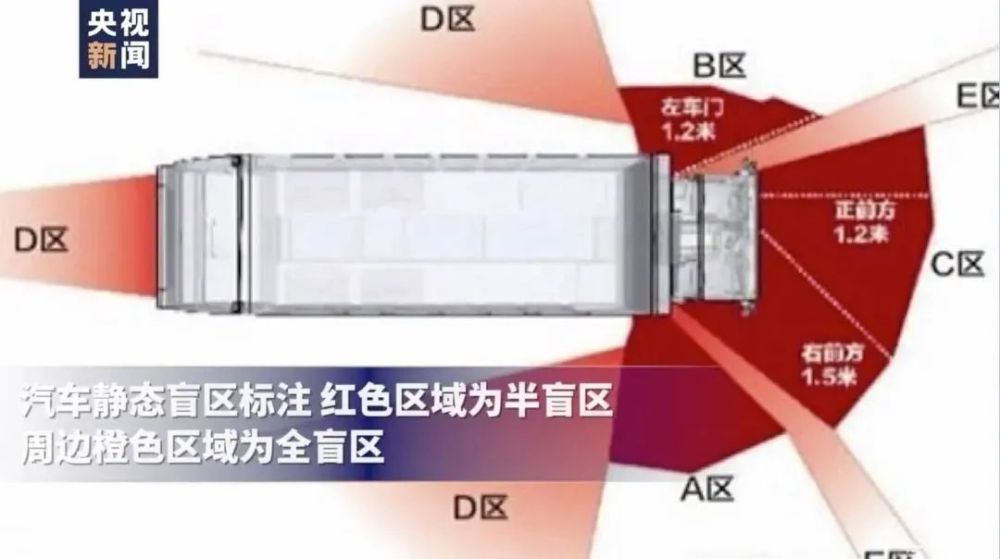 李冰介绍,车体越宽越高,车辆盲区的范围就越大。另外,车辆行驶时,盲区比静止时更大。