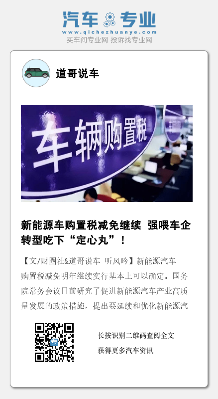 【文/财圈社&道哥说车 听风吟】新能源汽车购置税减免明年继续实行基本上可以确定。