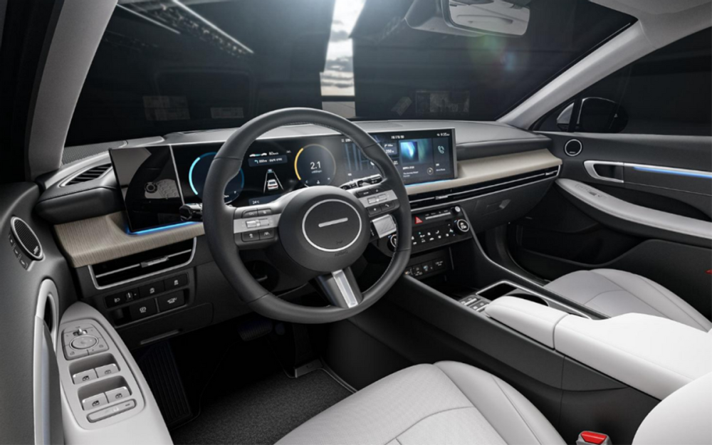 从产品本身来看,第十一代索纳塔的外观采用了全新设计语言,整体看起来也要更具年轻、科技、时尚气息。内饰仍是采用由双12.3英寸组成的一体式连屏设计并增加了曲面的视觉效果,配合全新样式的三辐式多功能方向盘,这也使得新车看上去十分具有质感。