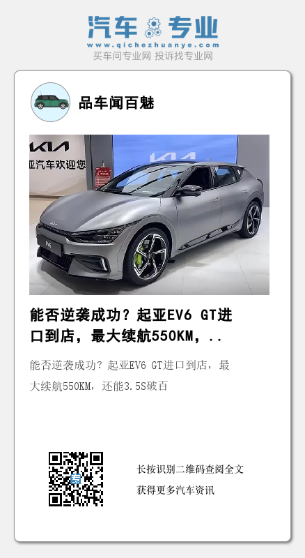 总体看来,起亚EV6 GT无论是颜值还是内饰设计,加之其宽大的空间和续航与加速表现,确实算得上同类型产品中的佼佼者了。但以起亚在国内汽车市场越发薄弱的号召力来看,且EV6 GT还是一款进口车型,这使其要想成功实现逆袭之势,定价水平便显得尤为重要了。