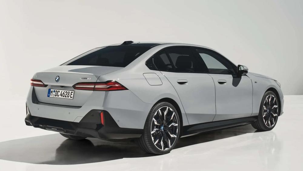 另外,车身侧面可以看到,全新5系摆脱了典型的三厢轿车氛围,展现出更动感的轮廓。它使用了宝马i4同款内嵌式门把手,而非当下流行的隐藏式门把手。