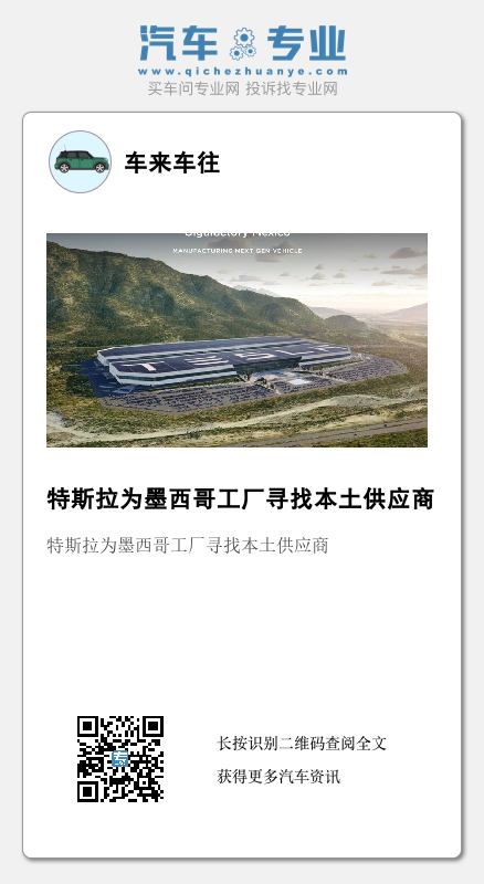 负责监督墨西哥工厂计划的Grandio表示,特斯拉首席执行官马斯克希望与能够与特斯拉一起成长的本土公司合作。不过,Grandio也指出,“世界各地的公司将有很多机会来到墨西哥,加入我们,并培养能够在内部进行创新的人才,帮助我们继续发展。”