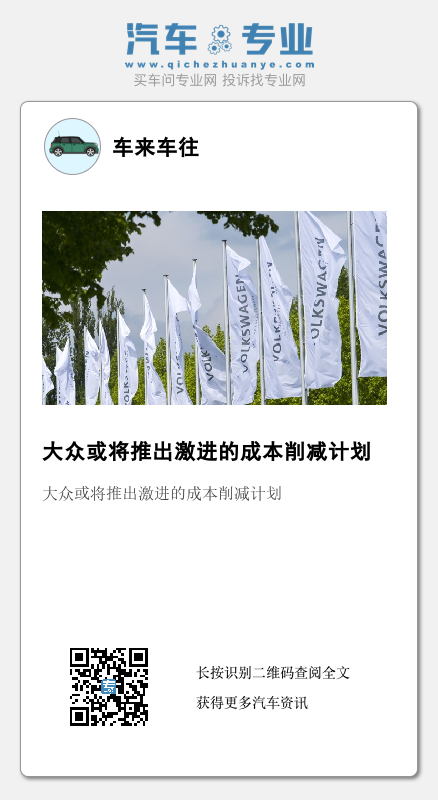 据外媒报道,两位接近大众汽车的消息人士在6月12日表示,大众汽车集团监事会将于当地时间6月13日召开会议,赶在6月21日资本市场日之前讨论一项计划中的成本削减计划。