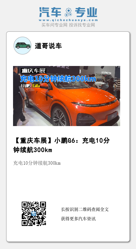【重庆车展】小鹏G6:充电10分钟续航300km