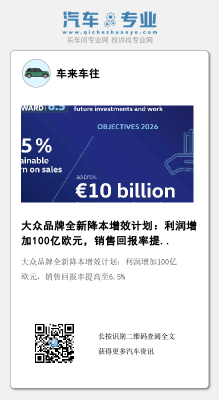 6月14日,大众集团旗下大众品牌宣布了ACCELERATE FORWARD | Road to 6.5降本增效计划。