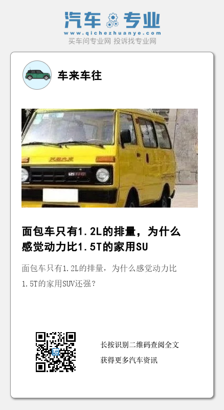 面包车看着很有劲,但是数据不会骗人,像五菱之光的1.2L发动机,最大功率才60kw,最大扭矩115牛米,而即使数据再平庸的的1.5T家用SUV,功率和马力也基本是它的两倍,但是为什么感觉还没有面包车有劲呢?跟发动机的调教也有关系。
